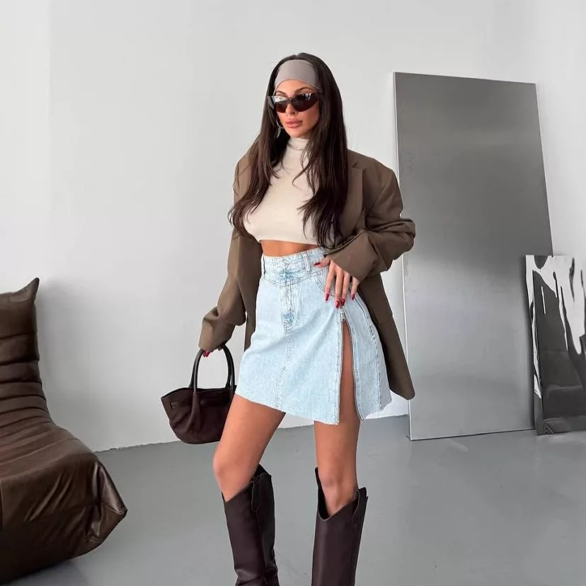 This is the kind of skirt that doesn’t whisper—it speaks. Between the daring slit, angled hem, and vintage finish, it blends sexy and street-style with just the right amount of attitude. It’s not just about what you wear, but how it makes you feel—and this one’s all about confidence.