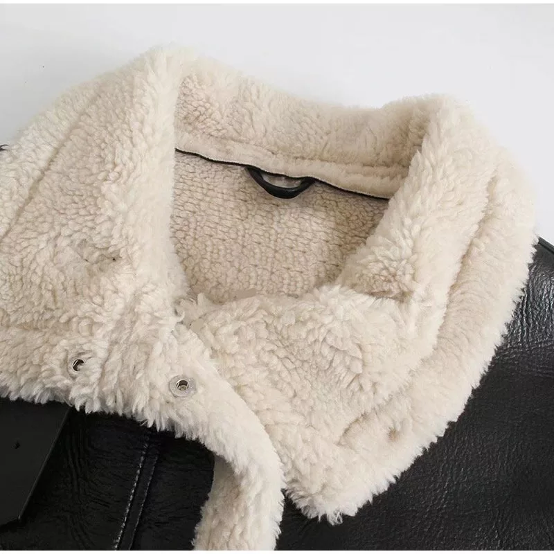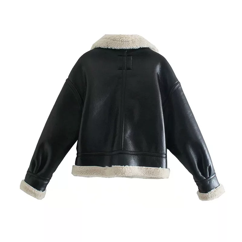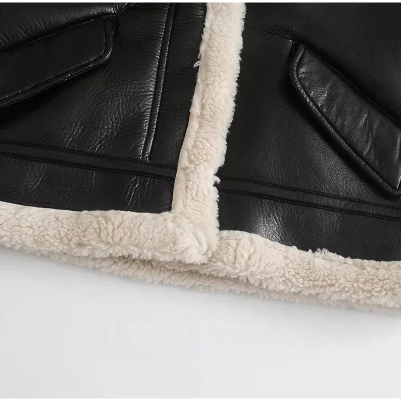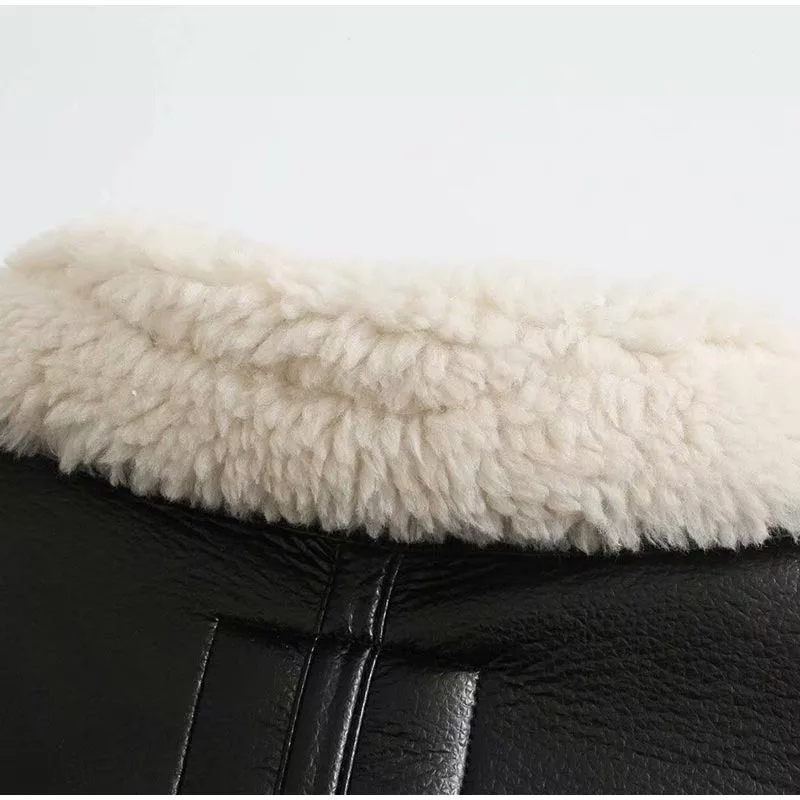 This oversized faux leather aviator jacket is the perfect piece for those who want to combine edgy fashion with cold-weather practicality. Make a bold statement while staying snug and stylish all season long.