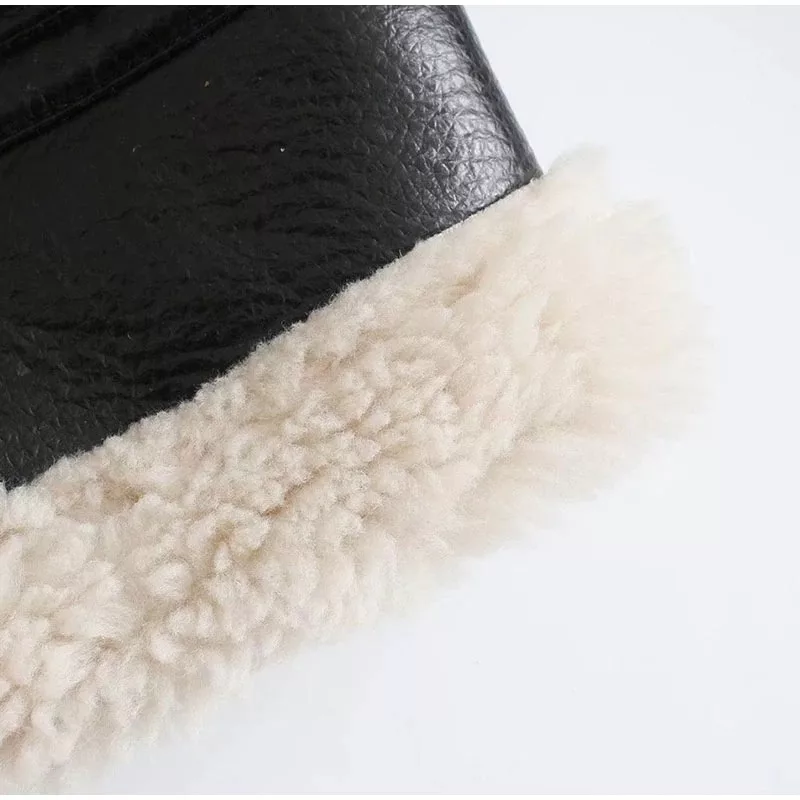 The classic aviator design is elevated with modern details such as a wide faux fur collar, zippered front, and statement-making oversized cut. Whether you’re pairing it with casual jeans for a laid-back vibe or throwing it over a dress for a night out, this jacket adds an effortlessly cool factor to any outfit. The sleek black faux leather exterior contrasts beautifully with the soft faux fur interior, creating a high-end look without sacrificing comfort.