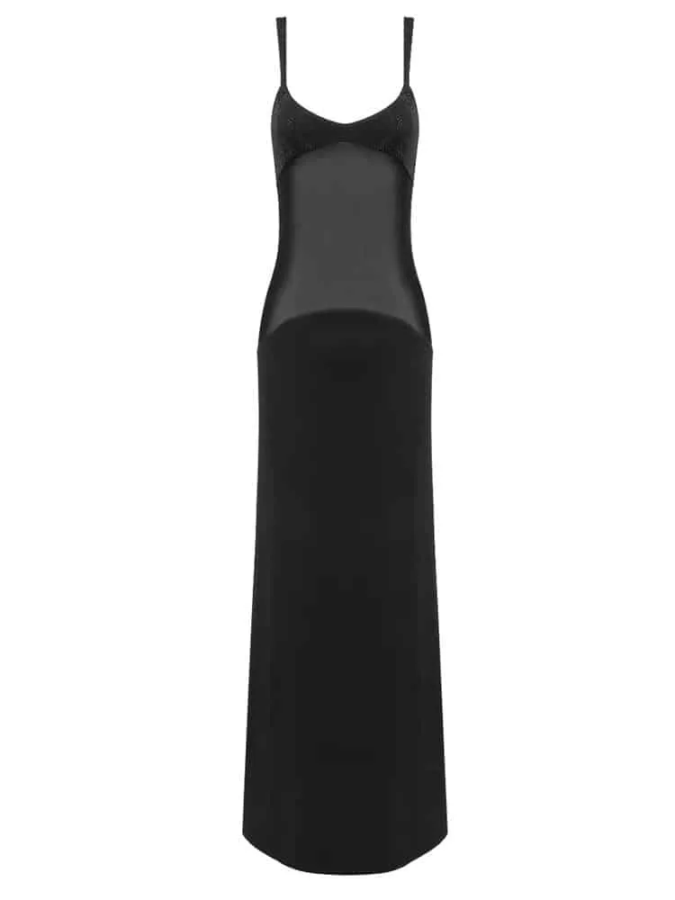 Imagine stepping into a room, and every eye is drawn to your sophisticated presence. The Black Mesh Strap Dress is designed for moments like these. Crafted to conform flawlessly to your figure, this long black gown drapes beautifully, creating a sleek, elongated silhouette that exudes confidence and grace. It’s more than just fabric; it’s a feeling of undeniable allure, making you feel poised and powerful from the moment you slip it on.