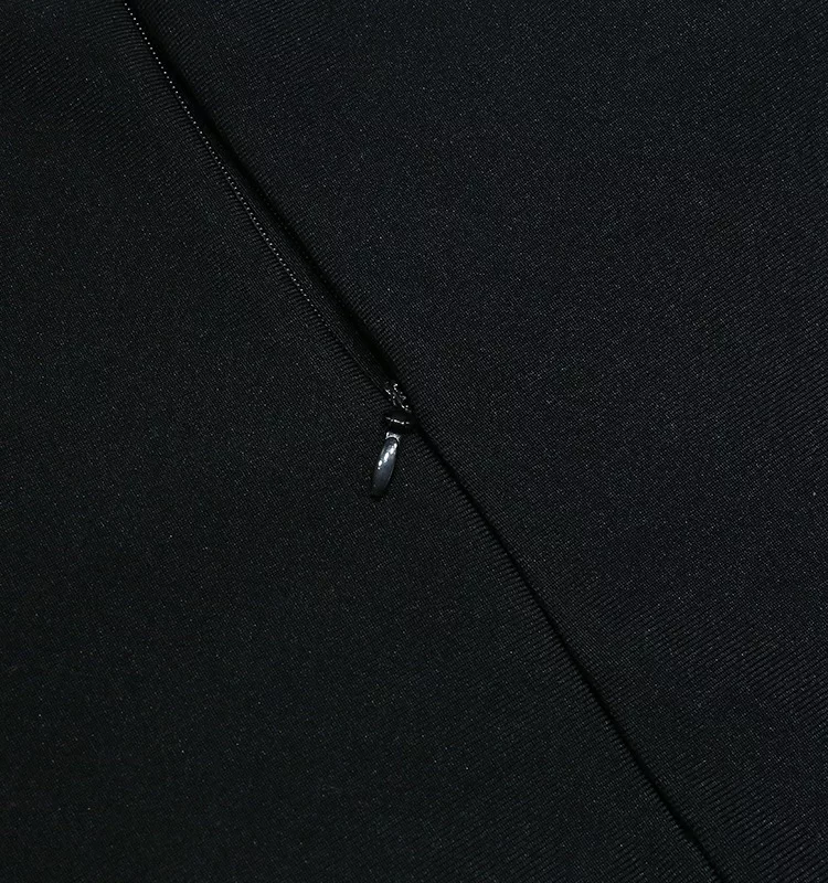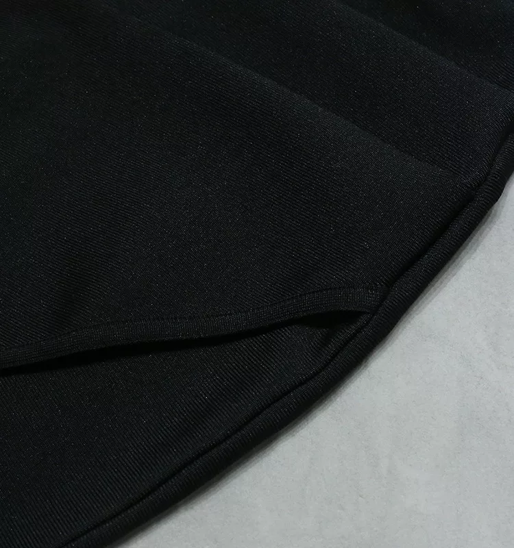 A luxurious black strapless bodycon dress with feather and sequin detailing, perfect for special occasions.