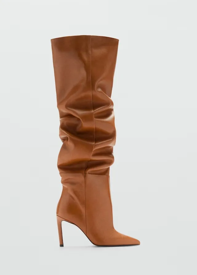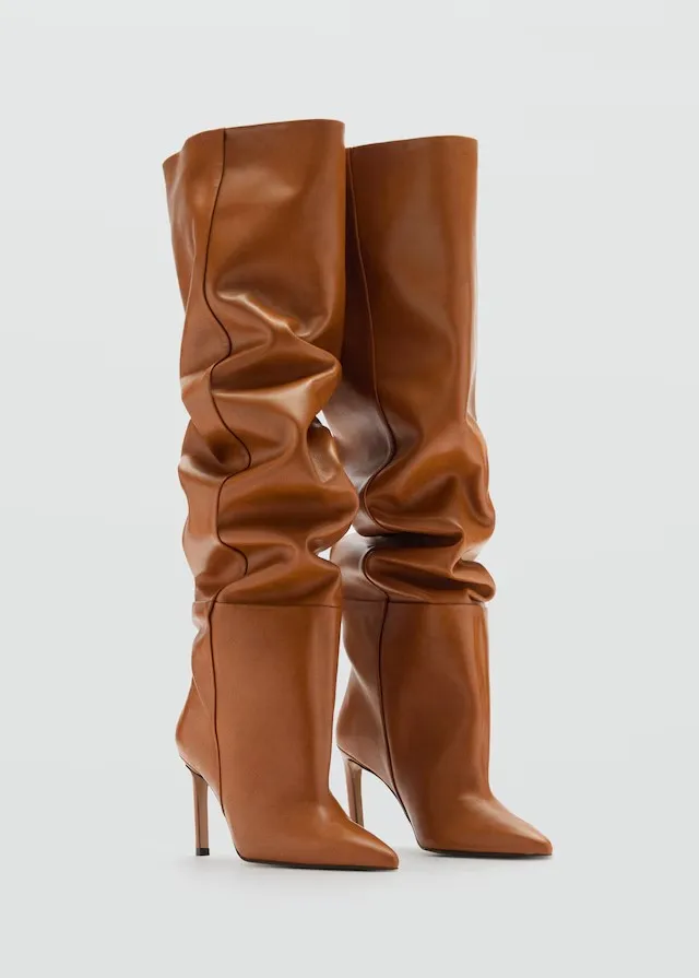 These statement boots feature a relaxed slouch shaft and sharp heel, instantly refining jeans, dresses, and tailored looks with confident, contemporary attitude and timeless appeal.
