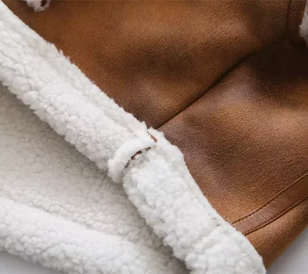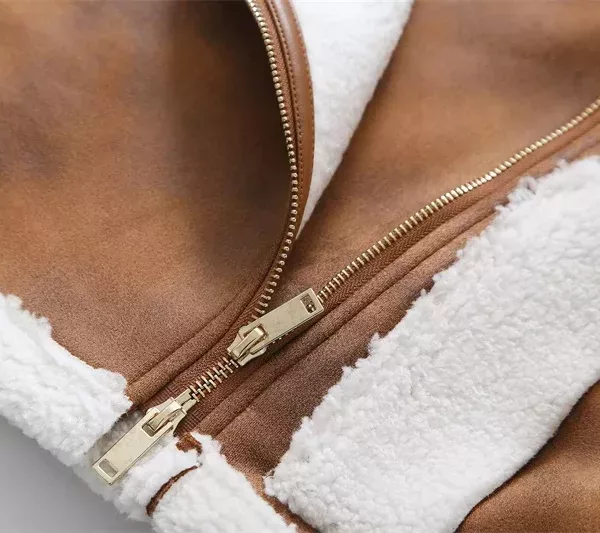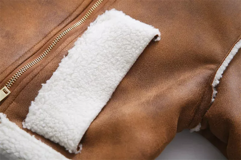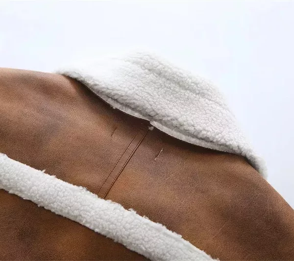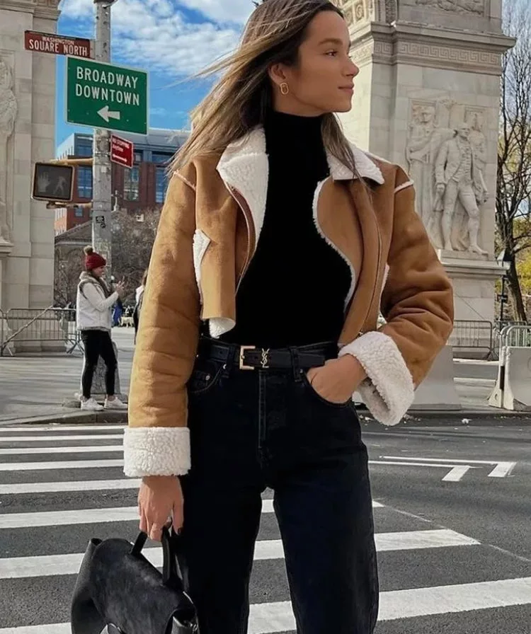 This jacket’s boxy shape and cropped length bring a modern touch to the classic aviator style, perfect for layering over cozy sweaters or sleek tees. The cropped cut accentuates the waist, allowing for an effortlessly chic look whether paired with jeans, tailored pants, or a dress. With its spliced vintage-inspired design, the jacket blends nostalgic appeal with a forward-looking edge, making it as versatile as it is stylish. Ideal for those who appreciate a refined, high-street aesthetic, this piece combines function and fashion for all-day comfort and style.