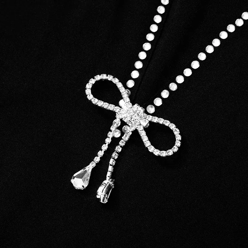 The diamond bow embellished mini dress is designed to transition effortlessly from cocktails to formal soirées. Pair it with stiletto heels and a sleek clutch for a polished evening look, or accessorize with bold earrings to make a dramatic style statement. Its versatile design and impeccable tailoring ensure you’ll feel confident and radiant, no matter the occasion.