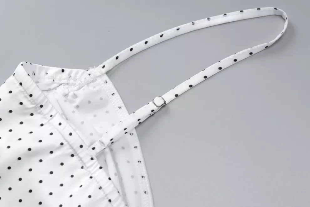 Whether you’re headed to a cocktail event, romantic dinner, or just want to elevate your day-to-night style, this dotted spaghetti strap midi dress will become your go-to for refined glamor. Its clean design and soft details make it endlessly versatile, and its tailored fit ensures you’ll feel confident and sexy with every wear.