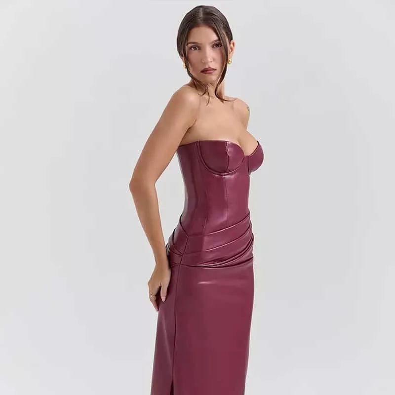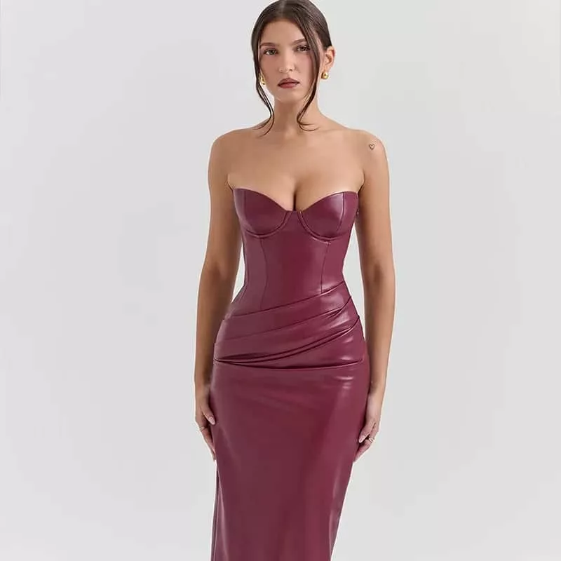 The faux leather strapless dress is ideal for formal evenings, cocktail events, or a glamorous night out. Pair it with vinyl thigh-high boots for a daring street-style vibe or opt for backless pumps and understated accessories to keep it elegant. Its versatility makes it an essential addition to your wardrobe, ensuring you’re always dressed to impress.