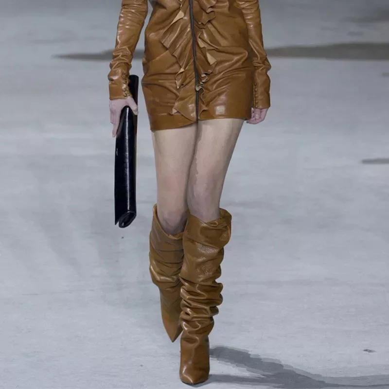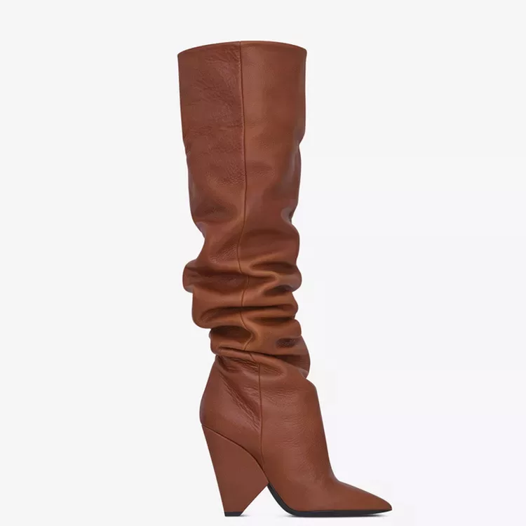 Elevate your footwear collection with the Pleated Conical Heel Boots, a perfect blend of style and comfort. Crafted from genuine leather, these over-the-knee boots feature a unique pleated design that adds sophistication to any outfit. The pointed toe and wedge heel provide a chic silhouette while ensuring ease of wear, making them ideal for both casual outings and dressy occasions. The wide calf design accommodates various leg shapes, allowing for a comfortable fit that doesn’t compromise on style.
