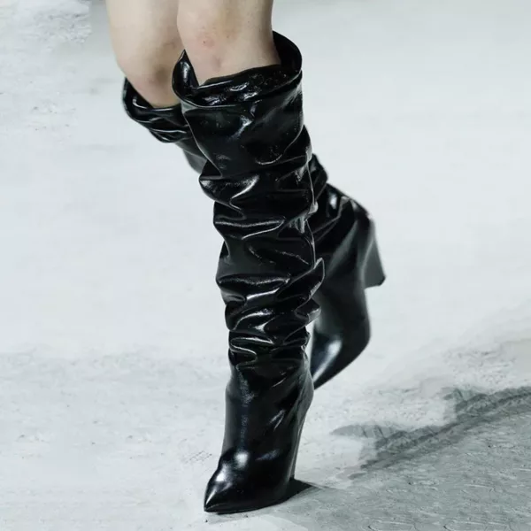 Stylish pleated conical wedge heel boots designed for comfort and elegance, perfect for any occasion.