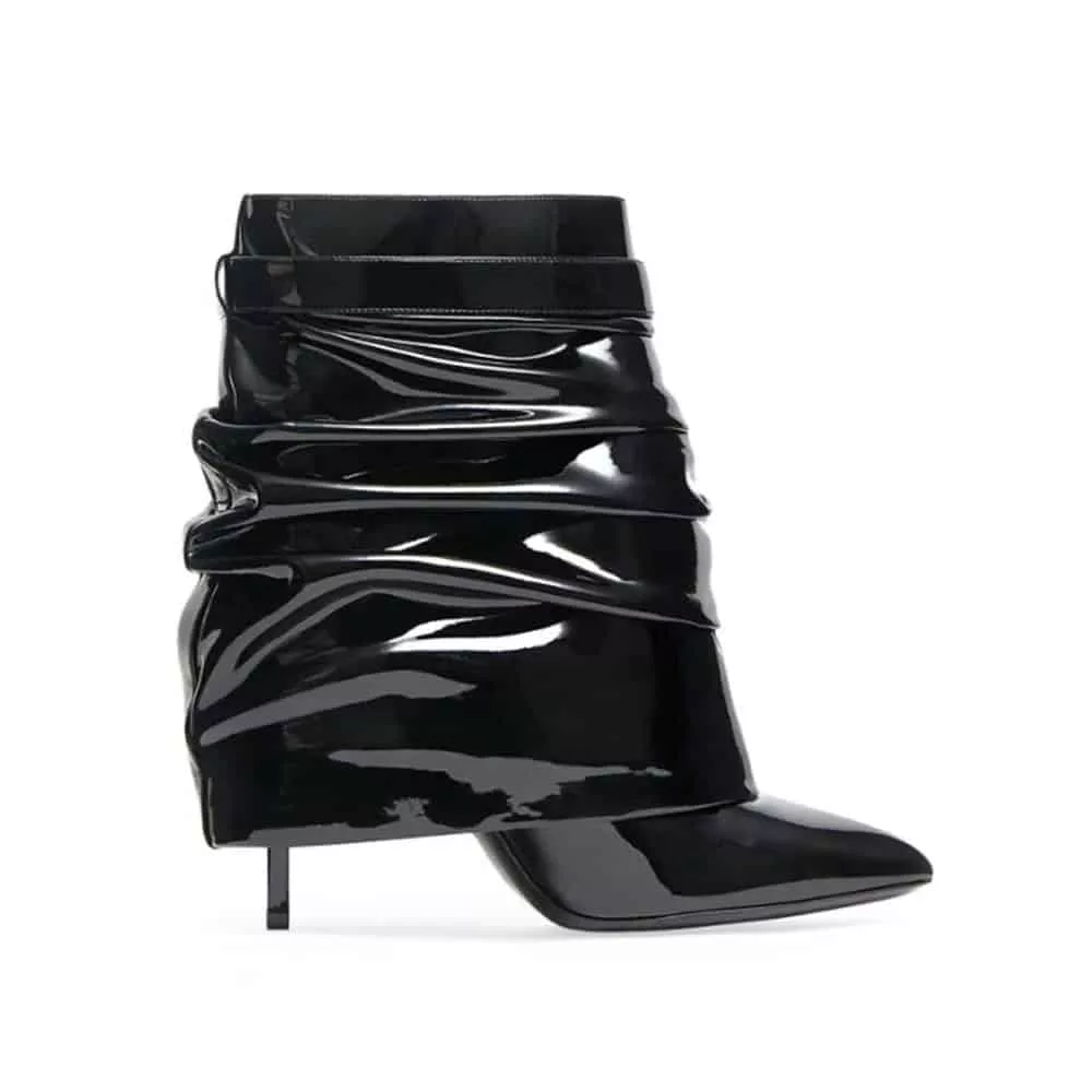 These ankle boots combine slouchy sophistication with modern details like the metallic lock, making them versatile for both day and night. Whether in soft suede or glossy vinyl, they ensure you stay effortlessly chic.