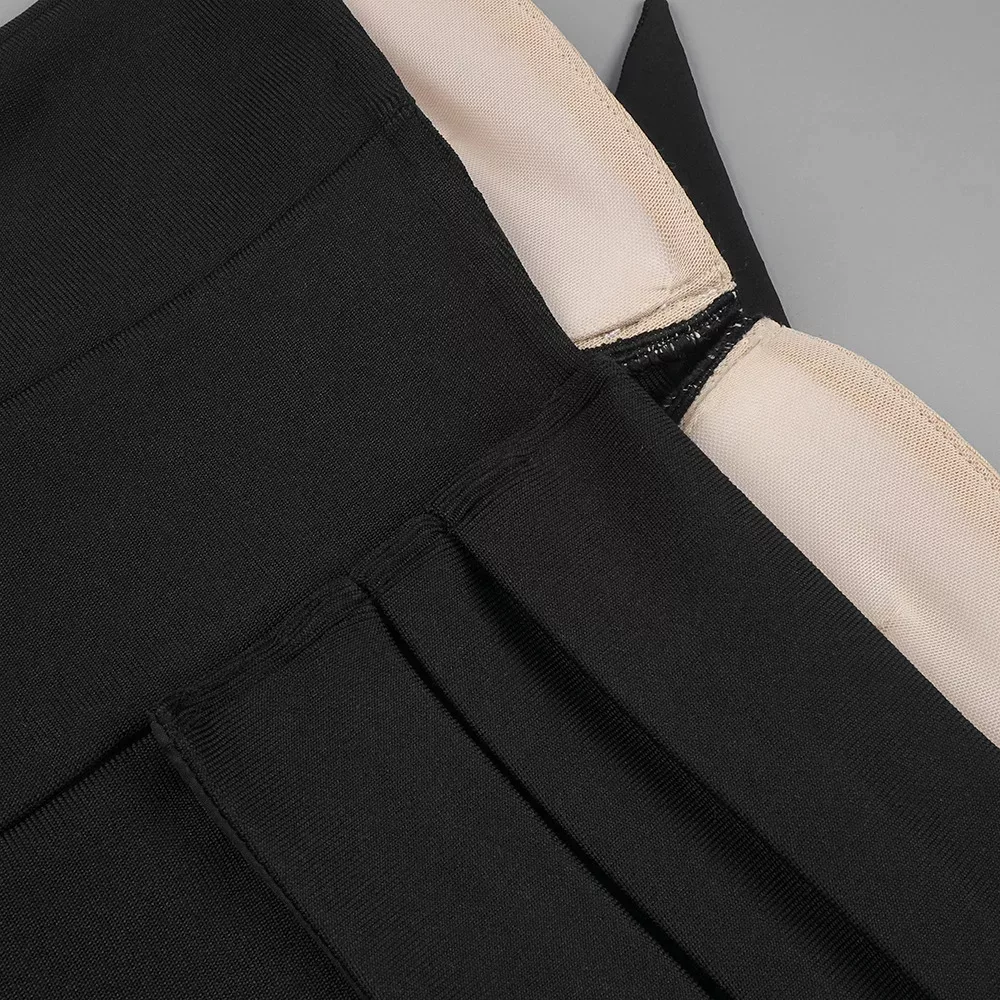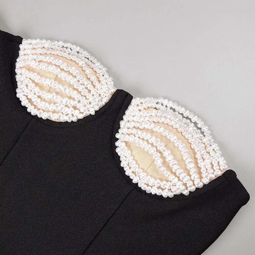 In addition to its glamorous design, the dress features a timeless black hue that ensures versatility and effortless sophistication. The pearl accents lend a classic touch to the modern bandage silhouette, creating a unique blend of contemporary fashion and timeless beauty. Whether you’re attending a cocktail party or an upscale soirée, this dress guarantees that all eyes will be on you.