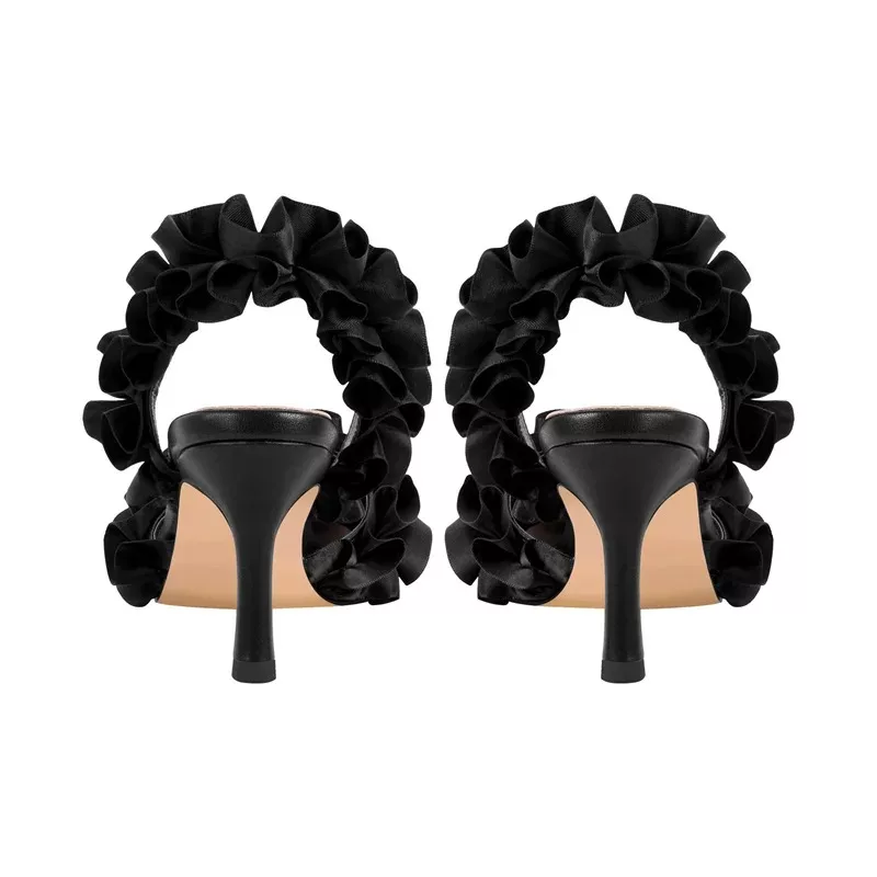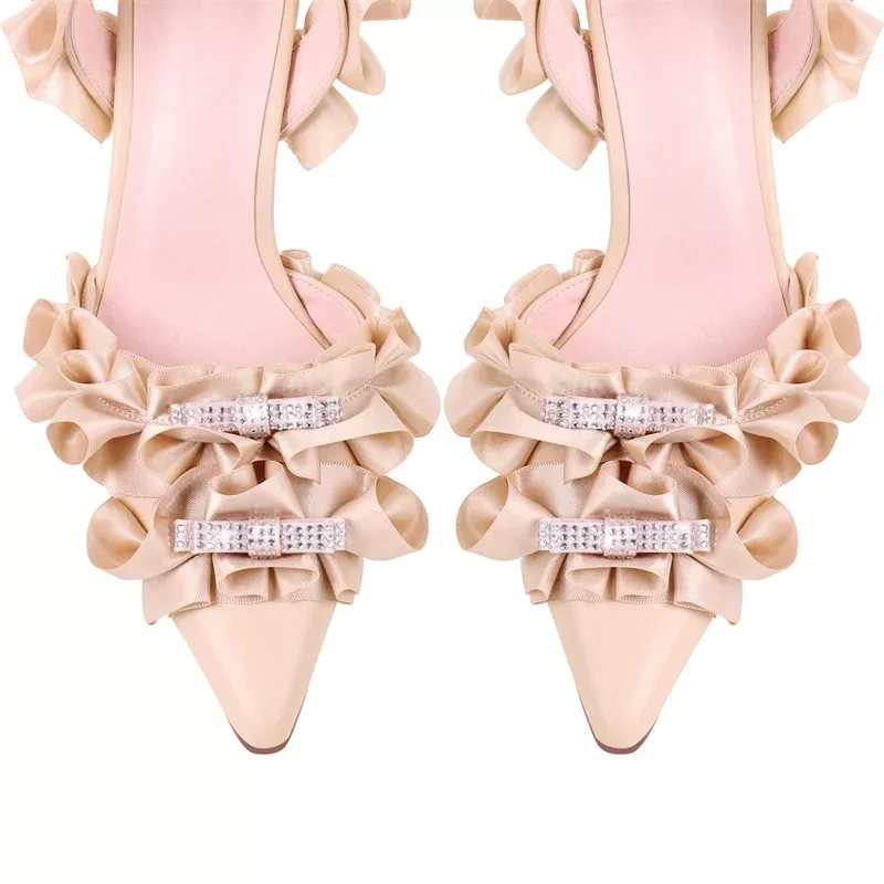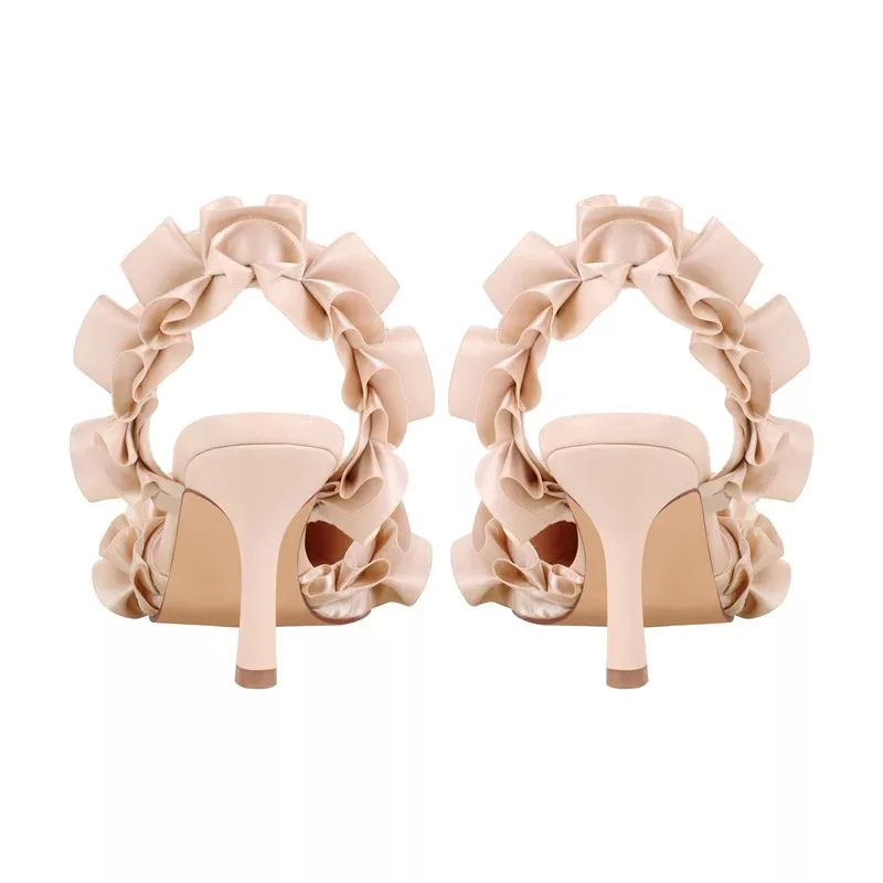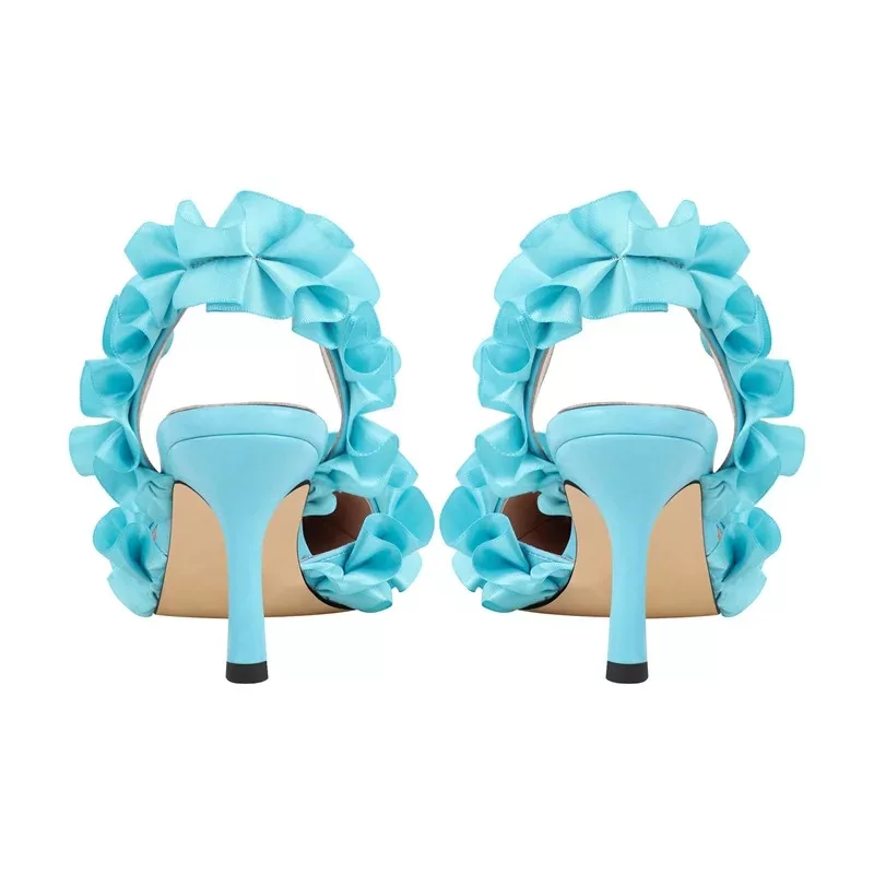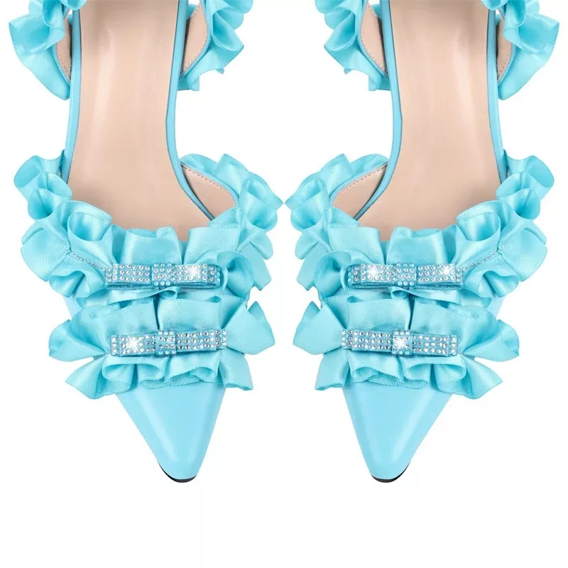 Crafted for those who appreciate the finer details, these sandals are the perfect companion for glamorous events and stylish evenings. Whether you’re stepping out in a chic dress or tailored pants, the combination of pleats, a pointed toe, and the chic bow creates a unique balance of style and grace. Available in elegant black, nude and Cyan, they epitomize effortless sophistication and versatility, allowing you to shine on any occasion.