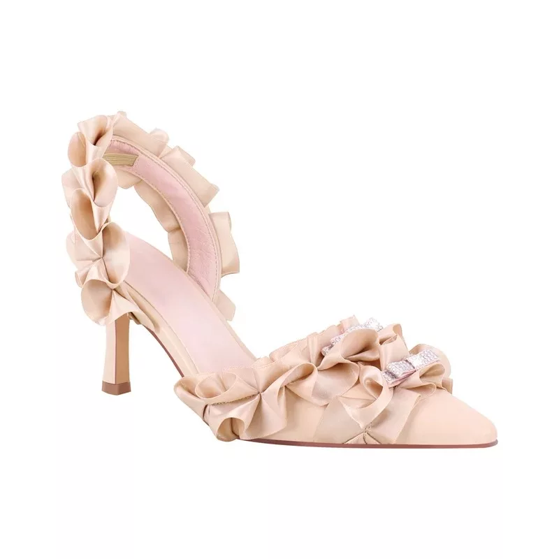 Unveil your inner elegance with the Pleated Ankle Strap Sandals. These high heels merge classic and contemporary design elements, featuring a pointed toe silhouette that offers a sleek, sophisticated look. The subtle pleats and delicate bow add a playful yet refined twist, while the ankle strap buckle ensures both comfort and a secure fit.
