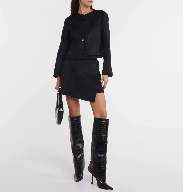 The pointed toe and stiletto heel create an undeniably chic look that works equally well for both casual outings and dressy events. With these boots in your wardrobe, you’ll always be ready to make an impression.