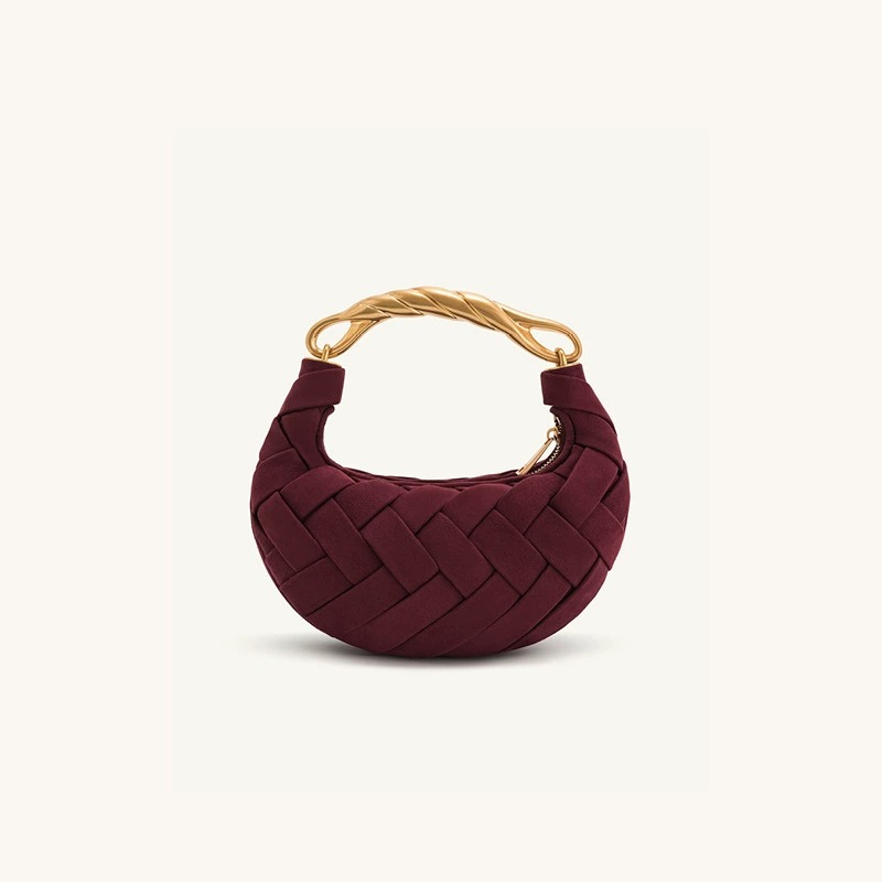 Chic Sculpted Velvet Burgundy Bag, Timeless Streetwear Elegance
