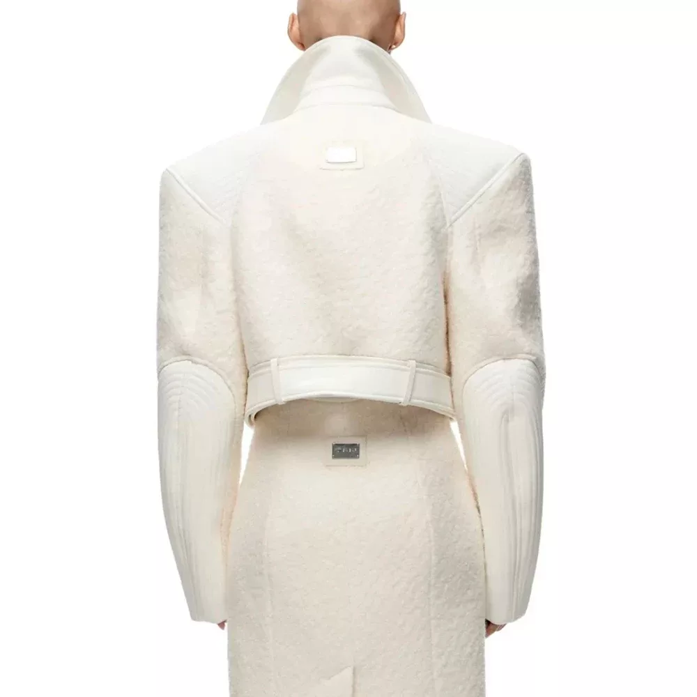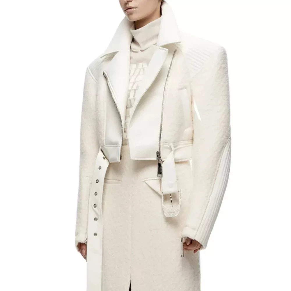 Elevate your urban wardrobe with our stunning spliced belt jacket for women. This exquisite piece showcases a unique design that artfully combines faux leather and teddy bear fabric, creating a visually striking contrast that speaks to contemporary fashion sensibilities. Crafted with meticulous attention to detail, the jacket features a lapel collar and long sleeves, ensuring both comfort and style during your everyday adventures.