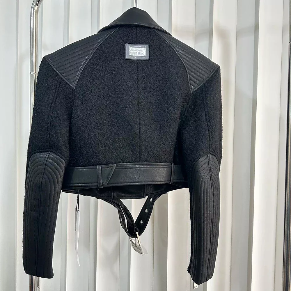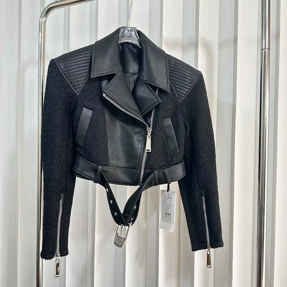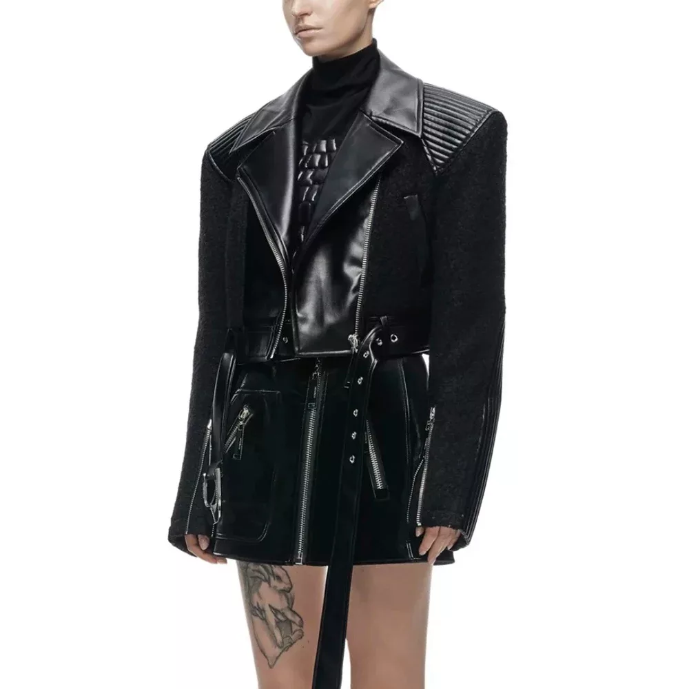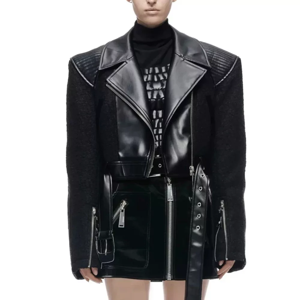 The Spliced Belt Jacket for Women features a stylish belted waist that accentuates your silhouette, providing both comfort and versatility. This element allows you to adjust the fit according to your preference, making it suitable for layering over dresses or pairing with tailored trousers. The fashionable patchwork design adds a contemporary twist to a classic biker style, making it a must-have for trendsetters.