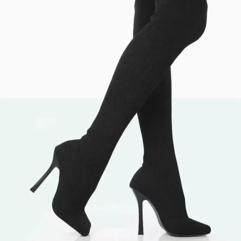 For those looking to shop stylish women footwear that makes a statement, these Square Toe Knitted Thigh-High Boots are a must-have addition to any wardrobe.