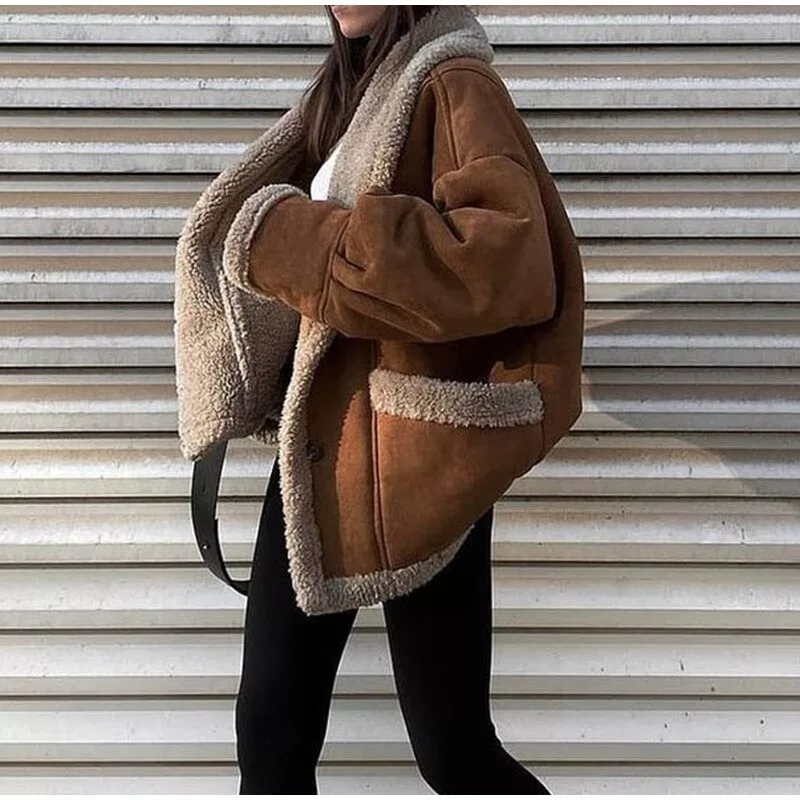 Embrace warmth, comfort, and fashion-forward style with this oversized teddy borg faux suede jacket, designed to keep you looking effortlessly chic in every season.